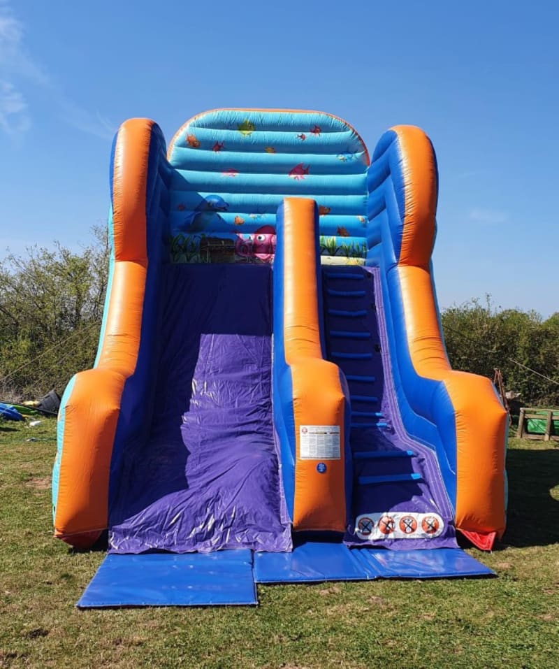 Our 10ft platform slides are big WOWS wherever they go!! Suitable for event hire/ weddings and parties. These can be indoor or outdoor but require a high height venue if inside. This Slide is bold and bright in our sea theme. Suitable for children up to 1.5m tall. Give your event or celebration the ultimate WOW by looking at our matching theme assault course. Guaranteed to be a big show stopping party/event by hiring both!